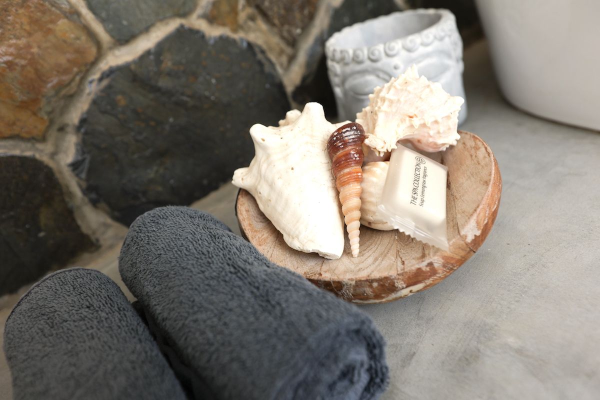 Een binnendeur leidt u naar de buitenbadkamer in Balinese stijl, compleet met een regendouche, dubbele wastafel en toegang tot uw eigen dompelbad. Magnesiumwater wordt al eeuwenlang gebruikt om spieren te ontspannen, stress te verminderen en de zachtheid van huid en haar te verbeteren.